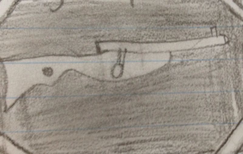 Dit is een tekening van hoe mijn pistool er ongeveer uitziet!
